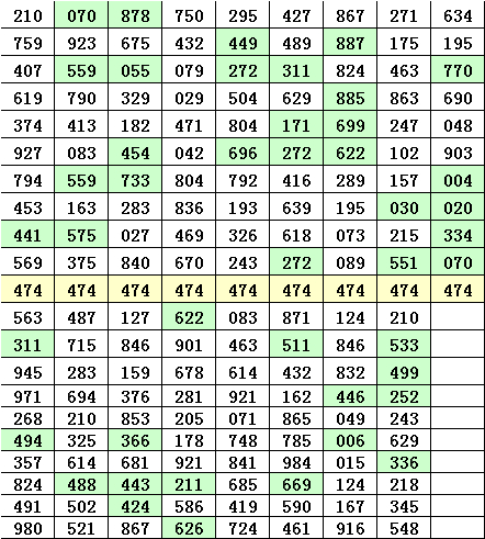 另外,历史上直选号码474开出9次,其下期开出奖号为:563、487、127、622、083、871、124、210,前后10期分别开出号码: